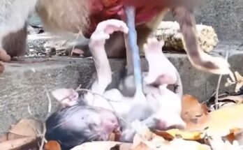 High in the treetops, where branches stretch toward the sky, a mother monkey experienced one of the most important moments of her life—giving birth to her newborn baby. Perched on …