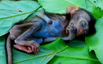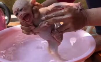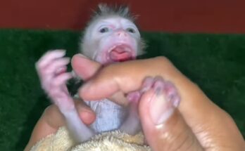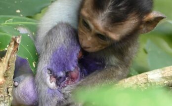 In a quiet corner of the forest, a tiny baby monkey lies alone, its soft cries echoing through the trees. Its small body trembles as it searches for warmth, for …