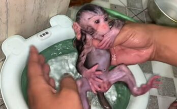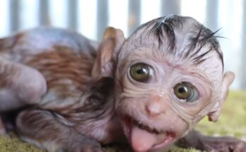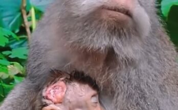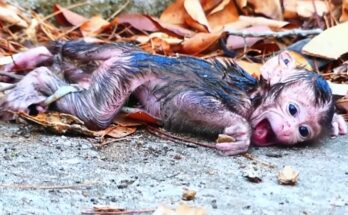 In the quiet heart of the forest, where sunlight gently filters through layers of green, a tiny baby monkey lay alone among the fallen leaves. His fragile body trembled as …