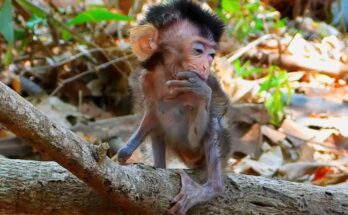 Poorest Baby Monkey Crying Alone in the Leaves Read More