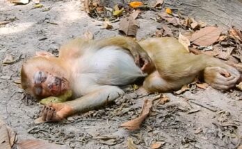 Miserable Poor Baby Monkey Got Seriously Injured Can Walking Read More